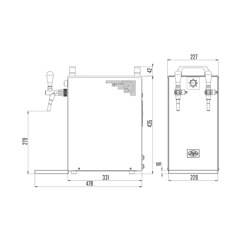 - Zařízení má dva výčepní kohouty a umožňuje čepování dvou nápojů.